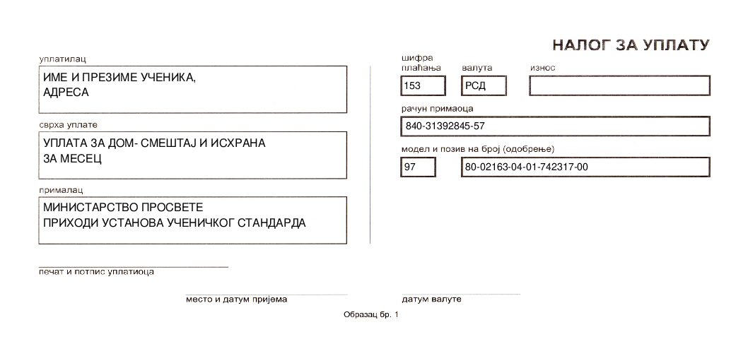 Уплата за смештај и исхрану за јануар је 5.374,00 динара. Због претплата или дуговања ученика износи се могу разликовати.